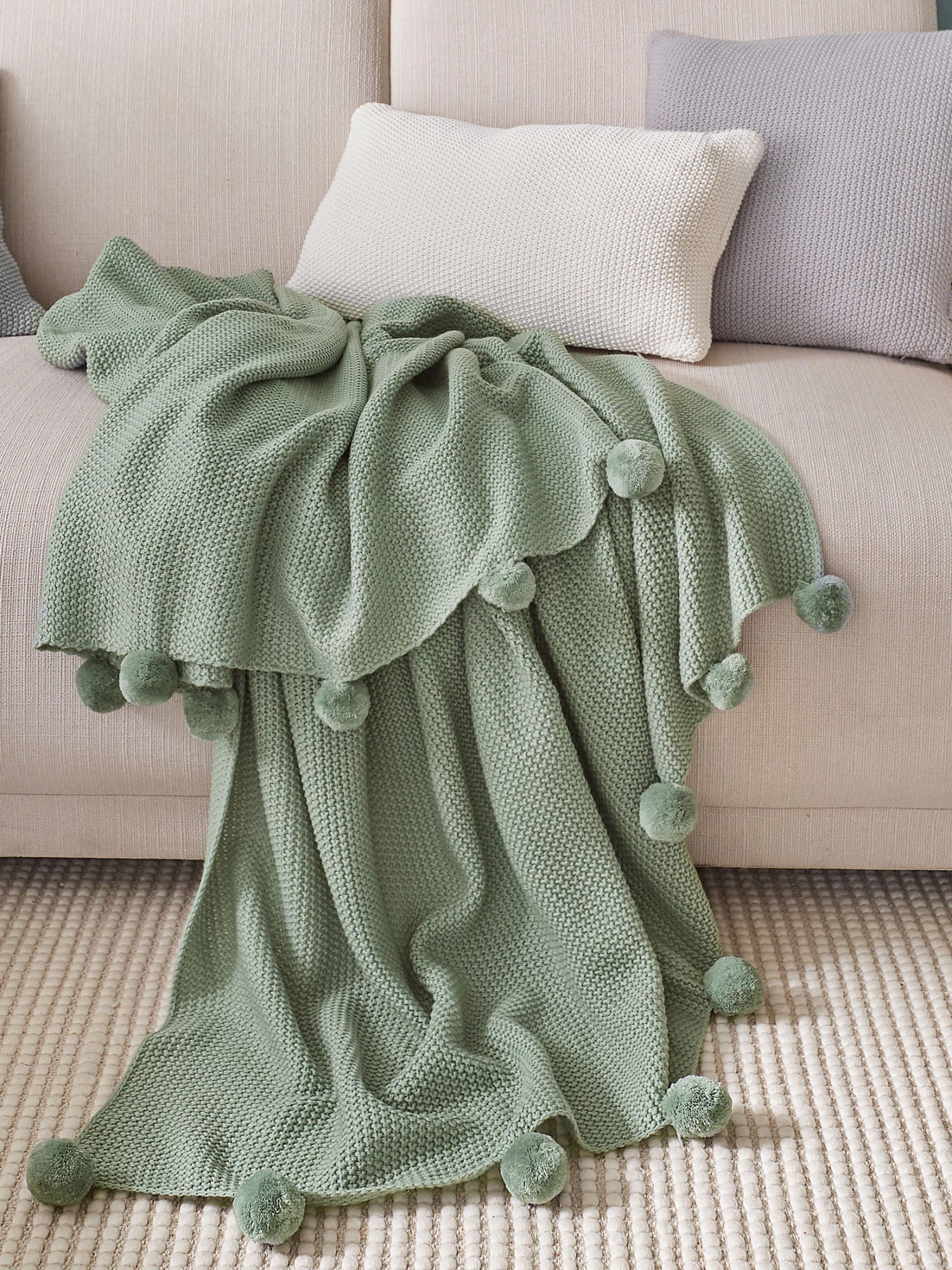 Einfach hyggelig. Verführerisch weiche Strickdecke. Material: 100 % Polyacryl. Oeko-Tex Standard 100.