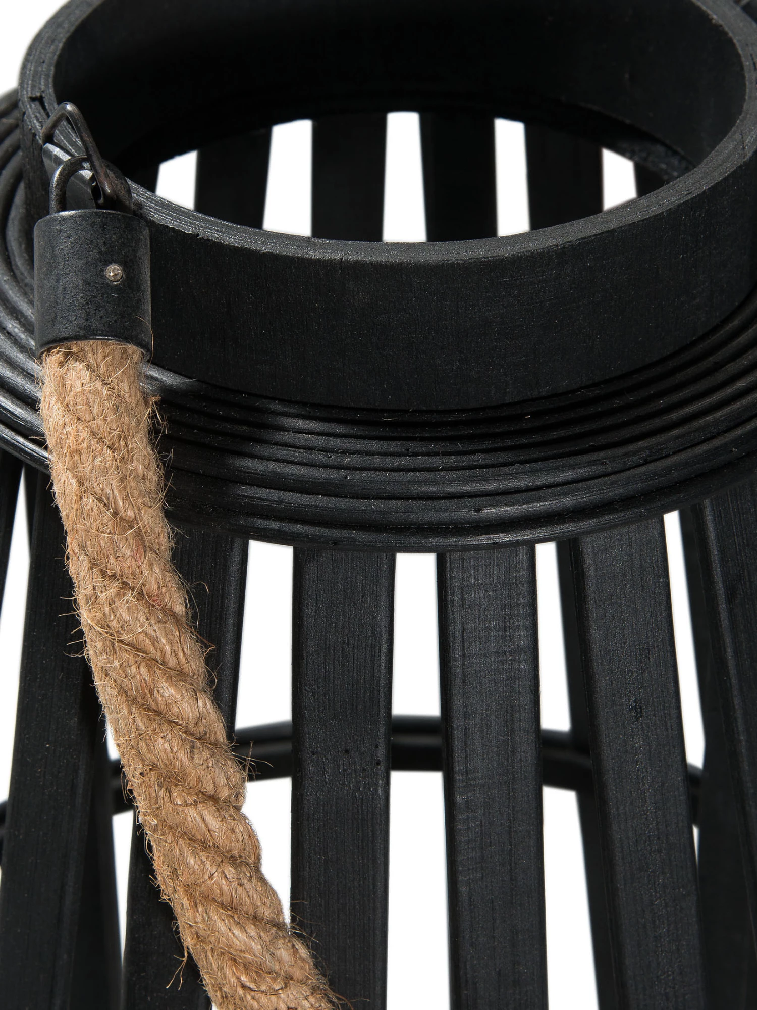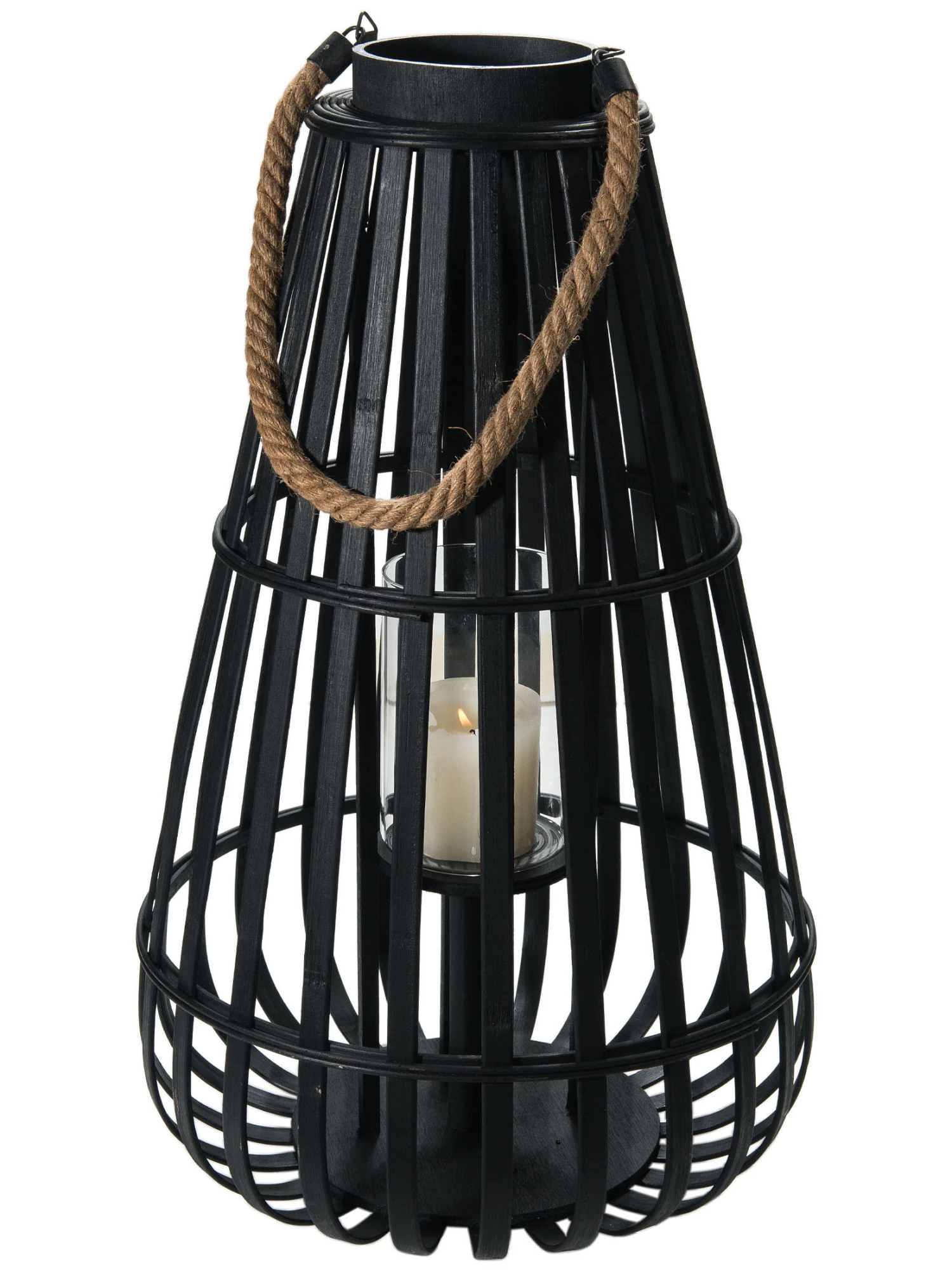 Elegante Bambus-Laterne in stilischem schwarz. Mit Henkel und Glaseinsatz.