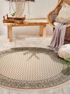 Ein gewebter Teppich in der Anmutung eines echten Mir-Teppichs. Der Flor besteht aus reiner