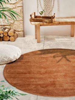 Außergewöhnlich feiner, handgearbeiteter Teppich aus hochwertiger Bambusseide. Das erlesene Material verleiht dem Flor den zarten Glanz und schmeichelt jeder Berührung. Hier in runden Größen erhältlich.